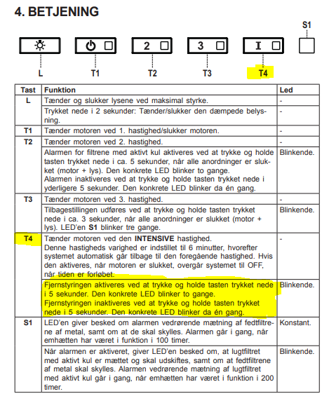 - Kontrollere at brugen af fjernbetjening er aktiveret på emhætten.