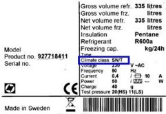 - Klasse SN = +10 - +32 °C (mest almindelige klimaklasse)
