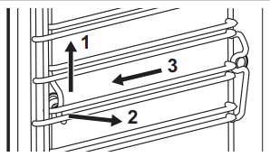 Træk den bageste ende af ovnribben væk fra sidevæggen, og fjern den
