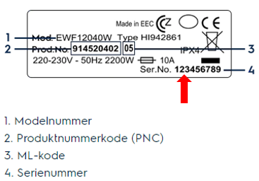 - Du kan se hvornår dit produkt er produceret ud fra serienummeret som er påtrykt typeskiltet / klistermærket.