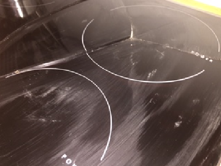 Hvis det keramiskeglas faktisk er revnet, fra kant til kant som i dette tilfælde, eventuelt som et trekantet mønster er årsagen normalt, at man har fralagt et varmt grydelåg, på glaspladen.
