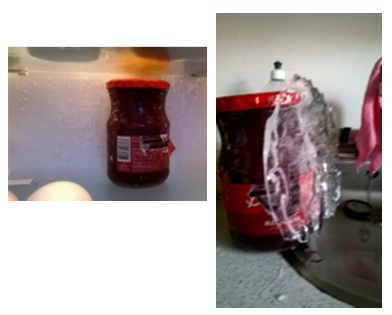 Eksempel på et glas der har været placeret for tæt på bagpladen: