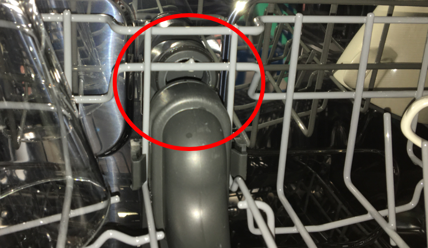 - Tjek og evt. tilpas vandforbindelsen til spulearmen bagerst i den øverste kurv. Justere den lodret så den har samme højde som forbindelsen bagerst i maskinens bagvæg.