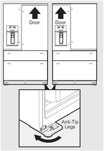 3. Sørg for, at begge døre er fri for bindinger, hvor pakningerne berører kabinettet på alle fire sider, og at kabinettet er stabilt.