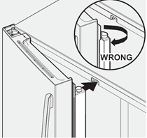 og vinkelret på døren til fersk mad. Hvis ophængsstyret ikke er i den korrekte position, kan det forhindre døren i at lukke helt.