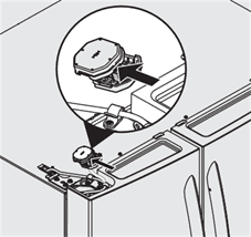 Sørg for, at vandslangerørene går gennem hullet øverst på dispenserlommen. Der er også en metalfolie på slangen for at forhindre beskadigelse fra hængslet, der gnider mod den. Dette skal fastgøres tilbage rundt om røret på det rette sted