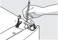 2. Indsæt 6 mm unbrakonøgle i skaftet på det nederste hængsel.