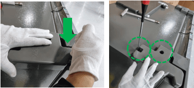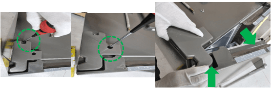 - Sådan demonteres, samles og omvendes døre og hængsler (3) Bred dør bagud og installation