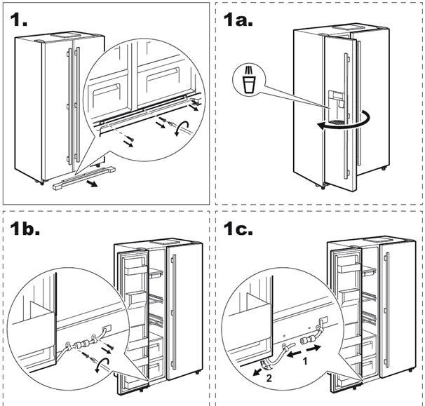 Udskift vandslange og sparkeplade (billeder af 11a, b, c) efter TRIN 11 i ovenstående instruktioner