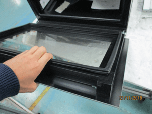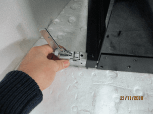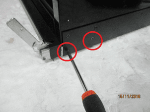 3) Løsn de 2 skruer, der fastgør dørhængslet