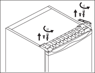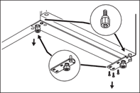 9. Skru skruerne i bundhængslet og de justerbare fødder af.