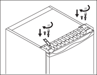 14. Installer det øverste hængsel på den modsatte side af apparatet. Sæt den øverste hængselstift i dørens øverste hul. Stram skruerne.