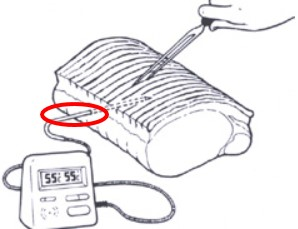 Centrum / kernetemperaturen i kødet vil normalt ikke stige, efter at kødet er taget ud af ovnen.